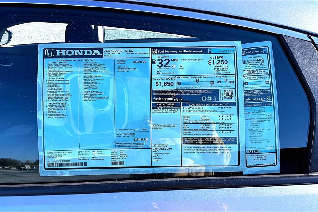 Solar Silver Metallic 2025 Honda Accord LX FWD CVT 1.5T I4 DOHC 16V Turbocharged VTEC