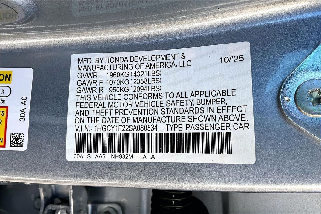 VIN 1HGCY1F22SA080534
