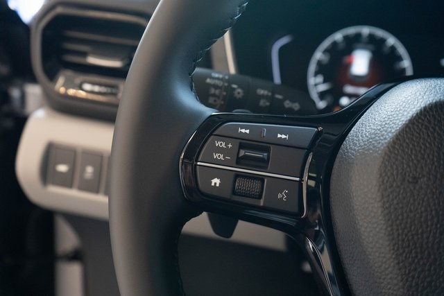 - Leather and metal-look steering wheel