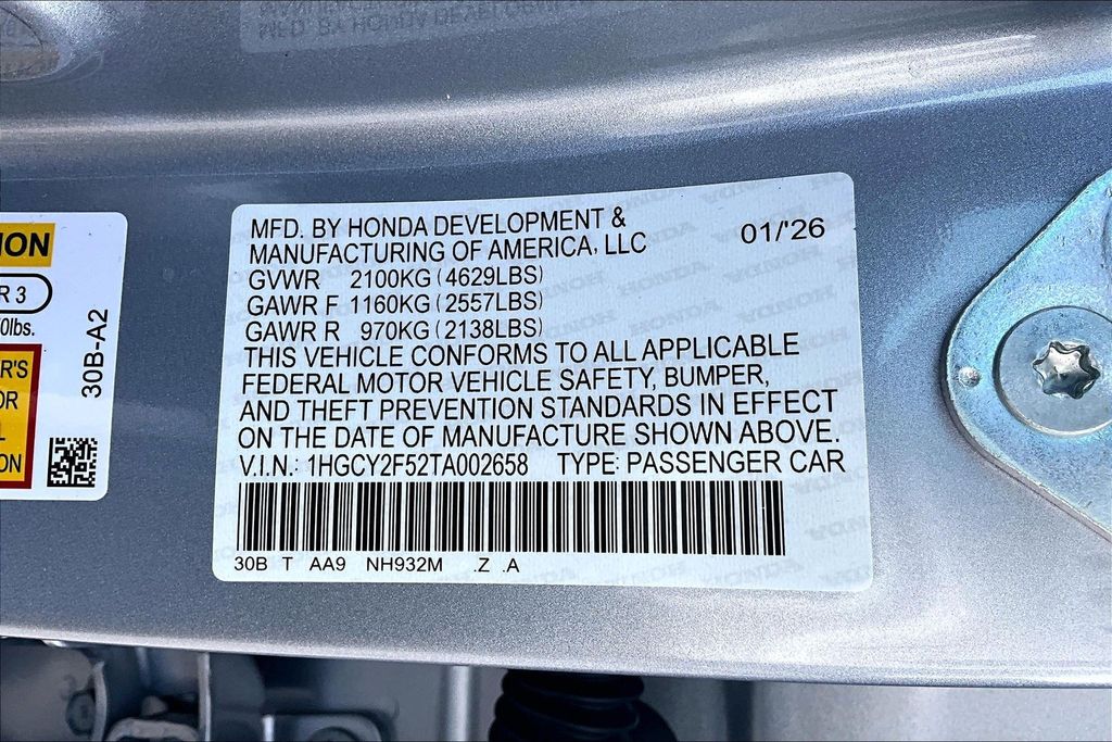 VIN 1HGCY2F52TA002658