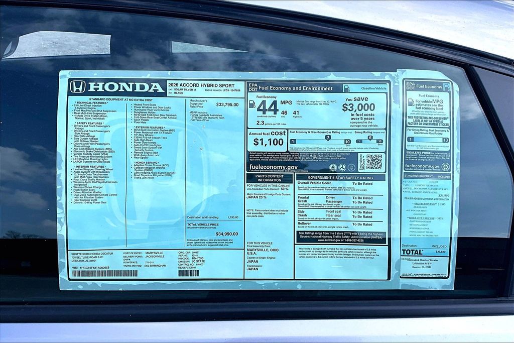 Solar Silver Metallic 2026 Honda Accord Hybrid Sport FWD CVT 2.0L I4 DOHC 16V