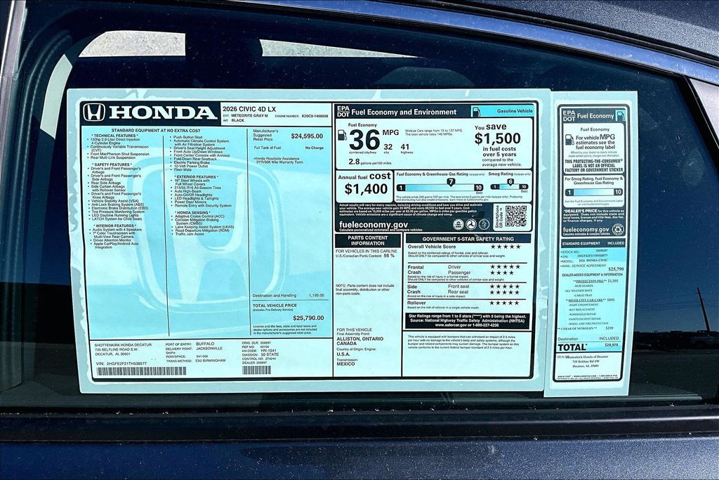 Meteorite Gray Metallic 2026 Honda Civic LX FWD CVT 2.0L I4 DOHC 16V