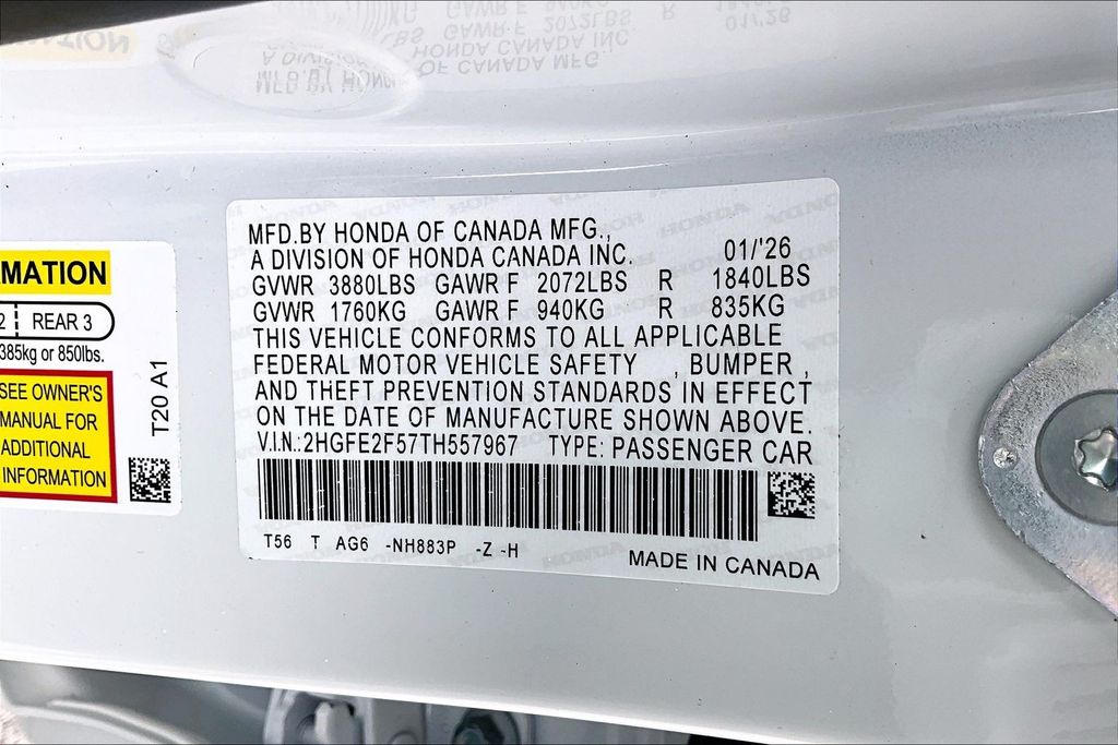VIN 2HGFE2F57TH557967