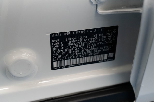 Platinum White Pearl 2026 Honda HR-V LX FWD CVT 2.0L I4 DOHC 16V i-VTEC 26/32 City/Highway MPG