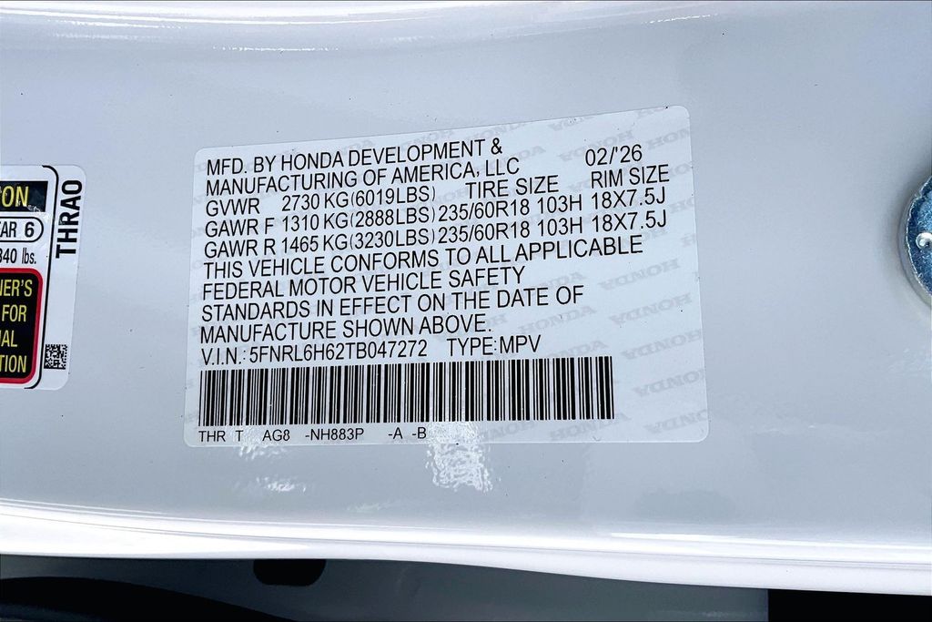 VIN 5FNRL6H62TB047272