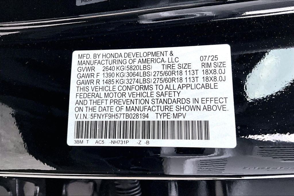 VIN 5FNYF9H57TB028194