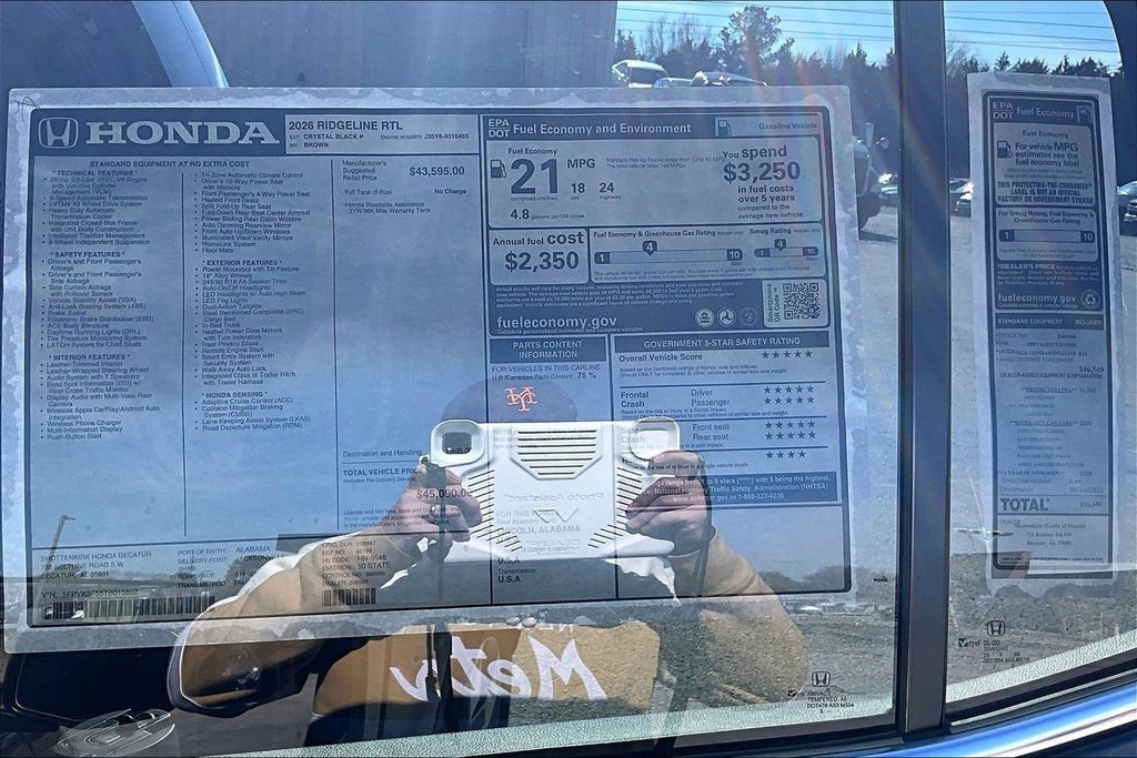Apple CarPlay, Android Auto, Adaptive Cruise Control, Back Up Camera, Blind Spot Monitoring System, Heated Seats, Leather Interior, Lane Departure, Power Drivers Seat, Remote Start, Ridgeline RTL, 4D Crew Cab, 3.5L V6 SOHC i-VTEC 24V, 9-Speed Automatic, AWD, Brown Leather. Bv 2026 Honda Ridgeline RTL AWD 9-Speed Automatic 3.5L V6 SOHC i-VTEC 24V