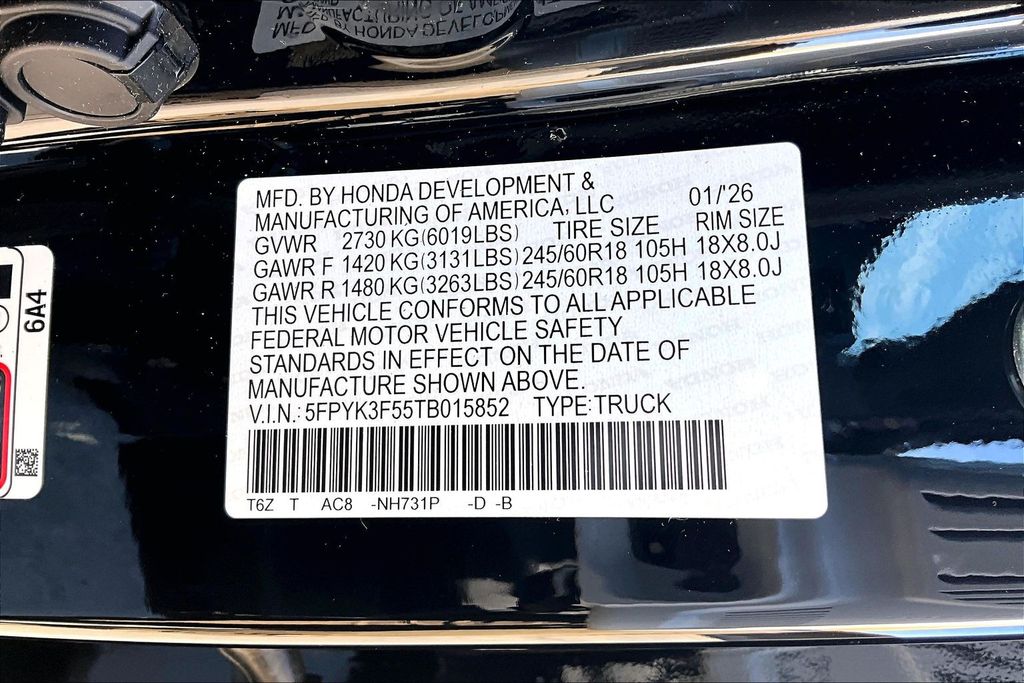 VIN 5FPYK3F55TB015852