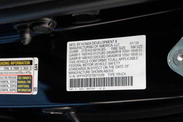 Nh-731p/Crystal Bl 2026 Honda Ridgeline RTL AWD 9-Speed Automatic 3.5L V6 SOHC i-VTEC 24V Nh-731p/Black Leather.