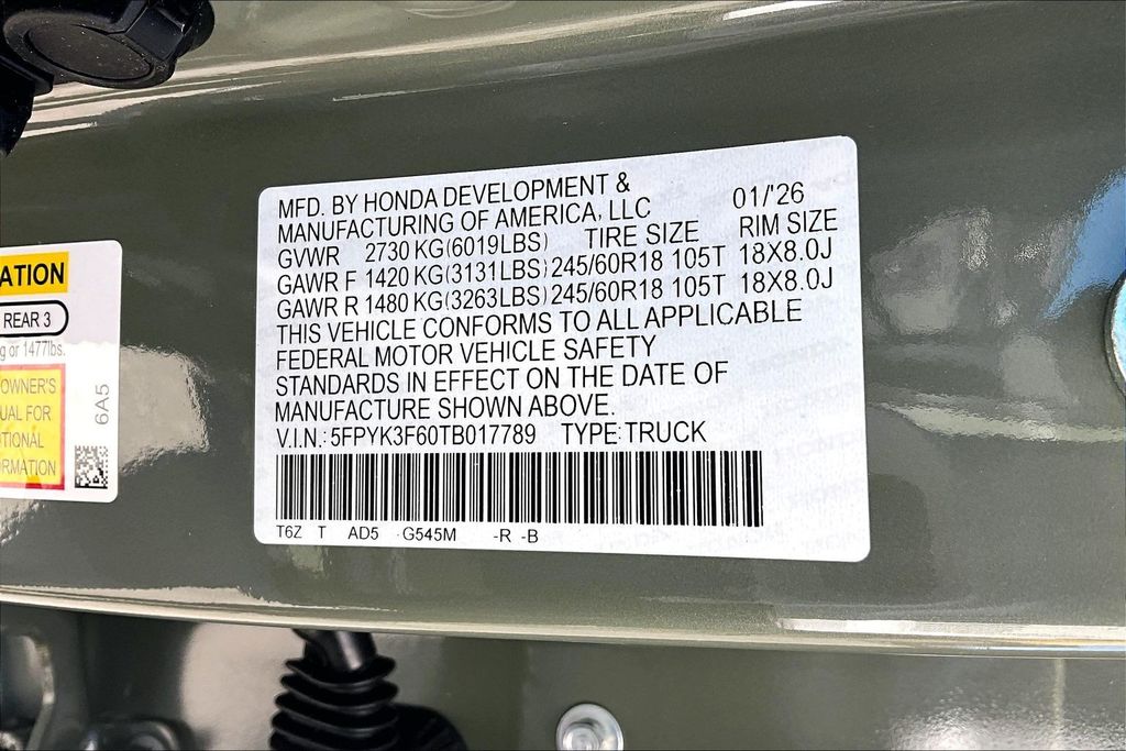 VIN 5FPYK3F60TB017789
