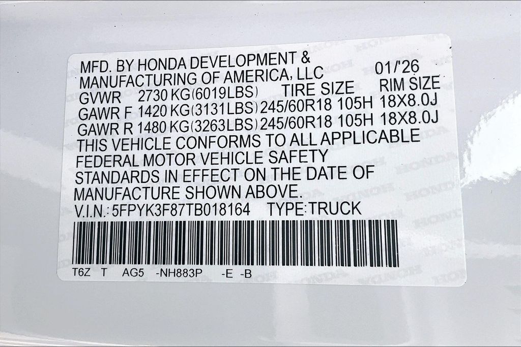 VIN 5FPYK3F87TB018164