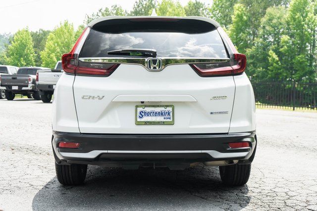 CARFAX One-Owner. Clean CARFAX. 2022 Honda CR-V Hybrid EX-L Platinum White Pearl 40/35 City/Highway MPG 2.0L I4 DOHC 16V AWD eCVT CARFAX 1-OWNER, CLEAN CARFAX, CERTIFIED PRE OWNED, 2.0L I4 DOHC 16V, 18" Alloy Wheels, Adaptive Cruise Control: Adaptive Cruise Control (ACC) with Low-Speed Follow, Apple CarPlay/Android Auto, Cargo Tray, Chrome Wheel Locks, Forward collision: Collision Mitigation Braking System (CMBS) + FCW mitigation, Heated door mirrors, Leather Seat Trim, Power door mirrors, Power Liftgate, Power moonroof, Protection Package, Speed control, Splash Guard Set, Spoiler, Turn signal indicator mirrors.
